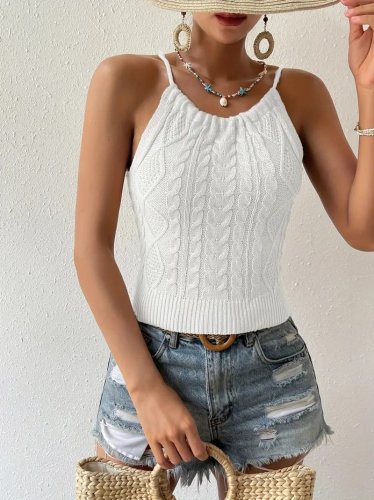 • Kadın kolsuz sırt dekolte detay askılı triko bluz