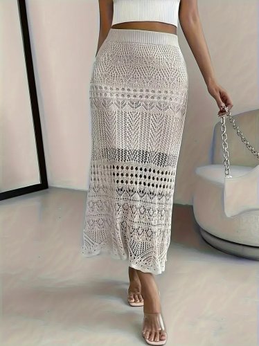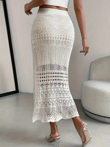 • Kadın midi boy ajurlu triko etek astarsızdır
