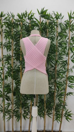 • Kadın kolsuz sırt çapraz detay triko bluz