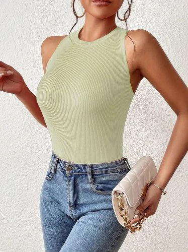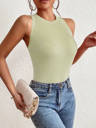 Kadın kolsuz sırt çapraz detay triko bluz