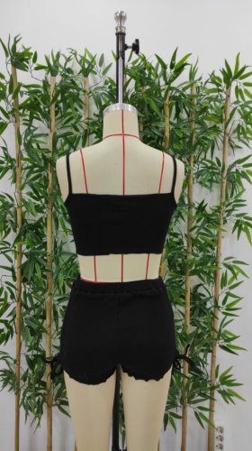 • Kadın ip askılı crop bluz ve yanlardan büzgülü ikili kaşkorse short takım