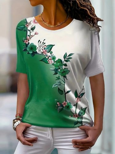 • Kadın kısa kollu çiçek desenli çift renkli süprem bluz