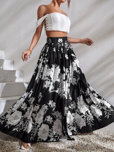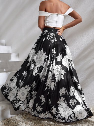 • Kadın çiçek baskılı maxi boy süprem etek