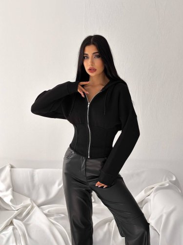 Kadın üç iplik kumaş belde korse detaylı hırka