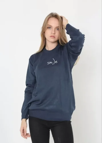 Unisex Bisiklet Yaka Baskılı Dokuma Triko Indigo
