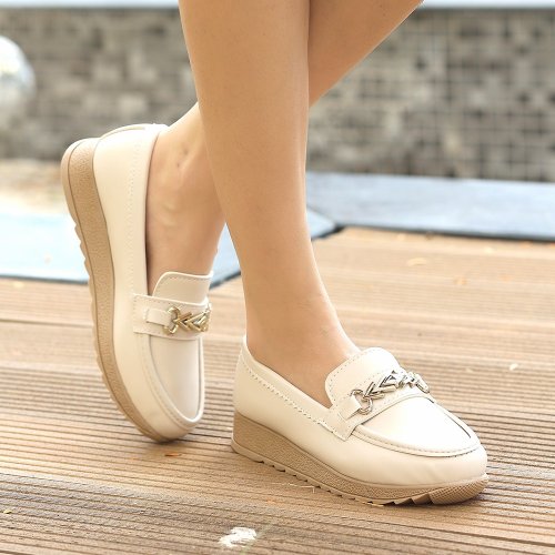 • Leyd Beyaz Cilt Babet Ayakkabı
