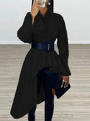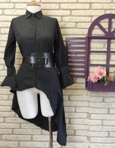 • Kadın Pamuk Polyester Kumaş Asimetrik Kesim Gömlek Kemer Dahil