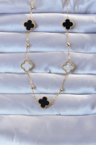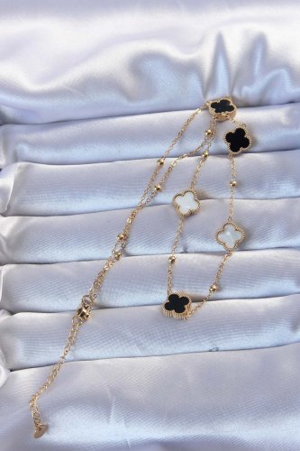 • 316L Çelik Altın Renk Çift Renkli Mineli Yonca Kolye