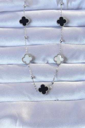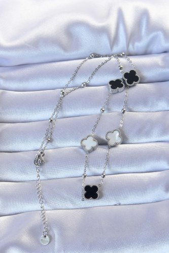 • 316L Çelik Gümüş Renk Çift Renkli Mineli Yonca Kolye