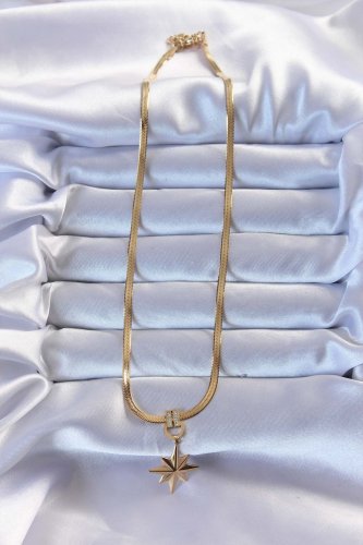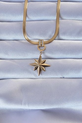 316L Çelik Altın Renk Zirkon Taşlı İtalyan Zincirli Kutup Yıldızı Kolye