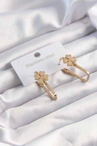 316L Çelik Altın Renk Geometrik Yonca Model Küpe