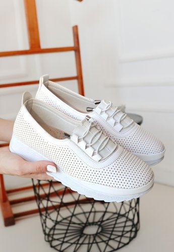 • Hooset Beyaz Cilt Babet Ayakkabı