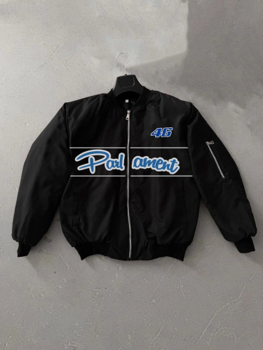 • Tam Kalıp Uzun Kol Baskılı Bomber Ceket Siyah