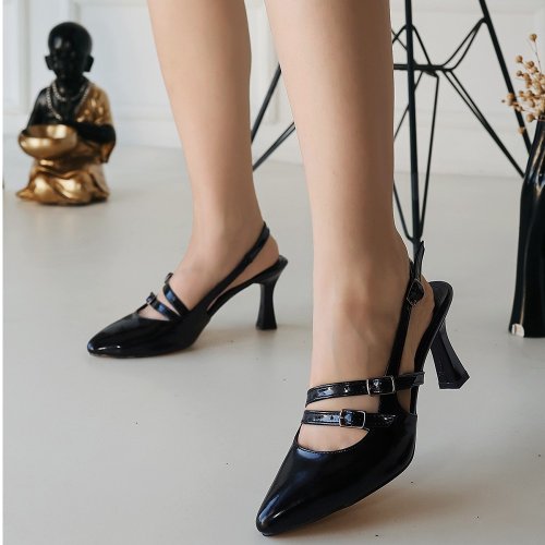 • Miar Siyah Rugan Topuklu Ayakkabı