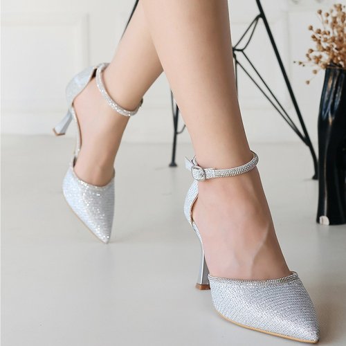 • Jonny Gümüş Saten Topuklu Ayakkabı