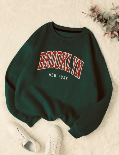 Kadın bisiklet yaka brooklyn baskılı üç iplik kumaş sweat