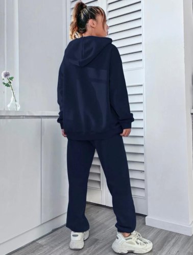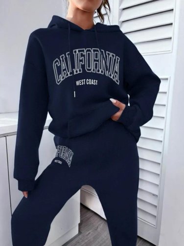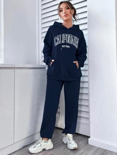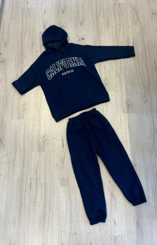 Kadın üç iplik kumaş california kapşonlu ikili takım