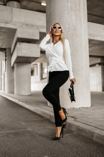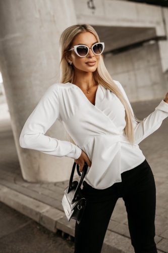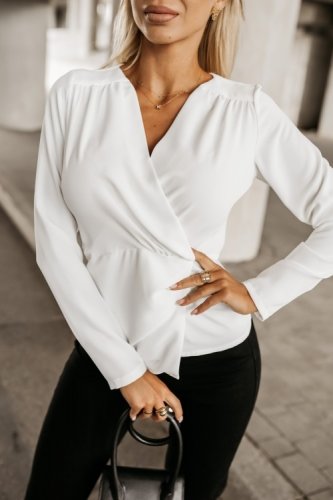 • Kadın uzun kollu kruvaze yaka krep bluz