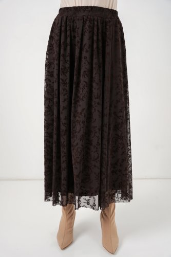 • Flok Baskılı Astarlı Etek 8069 Kahverengi