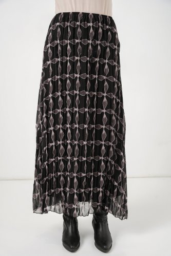 • Desenli Astarlı Şifon Etek 8058 Siyah