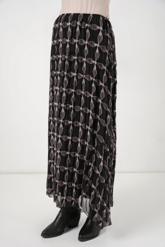 Desenli Astarlı Şifon Etek 8058 Siyah