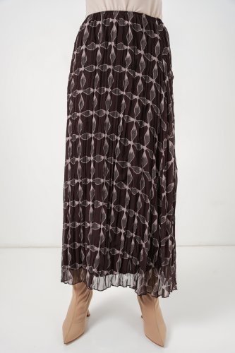 Desenli Astarlı Şifon Etek 8058 Kahverengi
